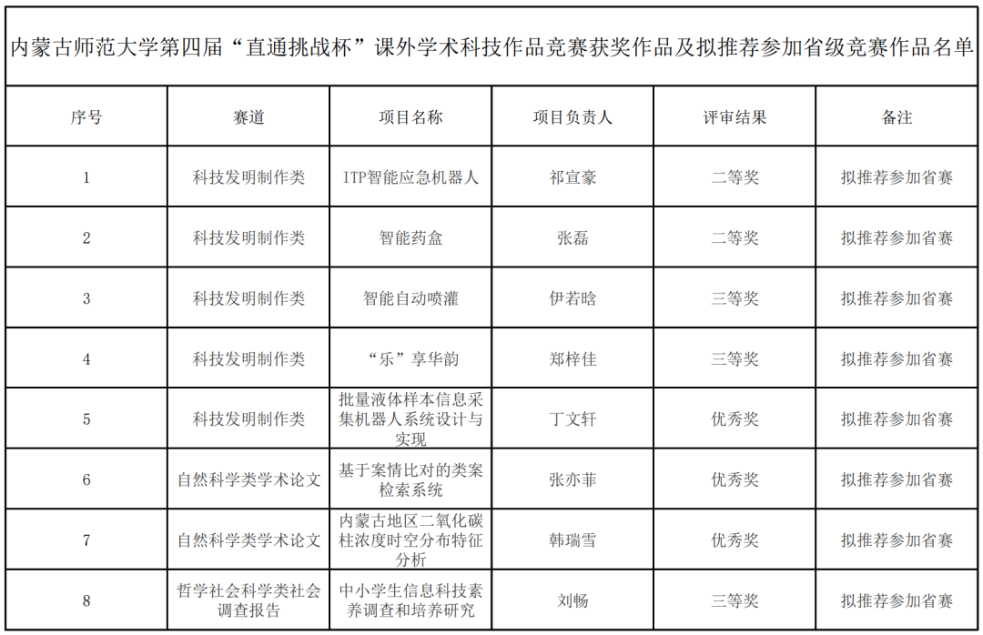 为进一步引导beat365青年学生努力培养科学精神和科学态度,积极学习科学知识和科学方法,提高学生创新品质和实践能力。4月8日下午beat365英国官方网站第四届“直通挑战杯”课外学术科技作品竞赛(决赛)在盛乐校区学生事务中心举行,beat365,获科技发明制作类二等奖2个、三等奖2个、优秀奖1个;自然科学类学术论文类优秀奖2个;哲学社会科学类社会调查报告类三等奖,,学院荣获“优胜杯”称号。