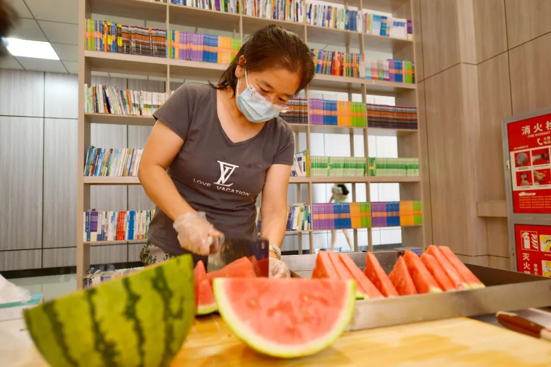 8月2日,beat365英国官方网站购买了2000余斤西瓜,为在校的1076名学生送上解暑神器。学院副院长斯琴图,副院长智敏以及全体辅导员将切好的西瓜“上门配送”到学生公寓和教室,将夏日的清凉带到全体计科青年学生的身边。