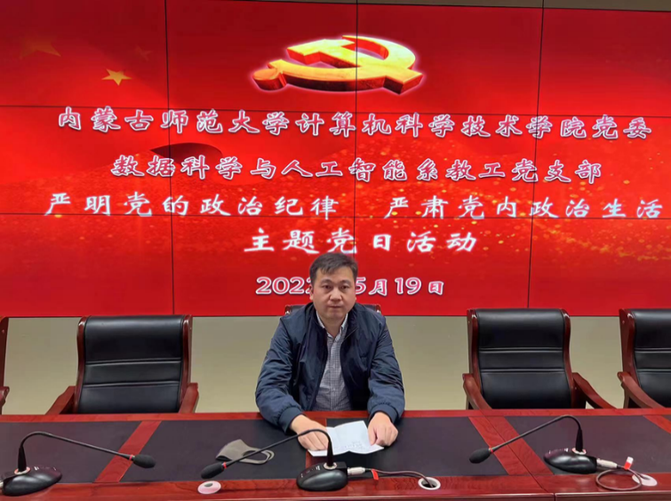数据科学与人工智能系教工党支部书记葛湘巍主持会议,支部全体党员参会,学院党委书记玉柱列席会议。