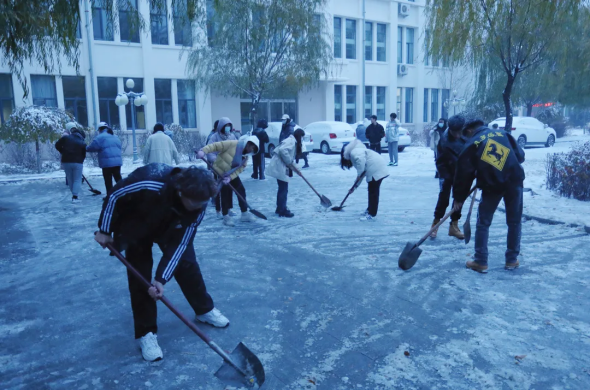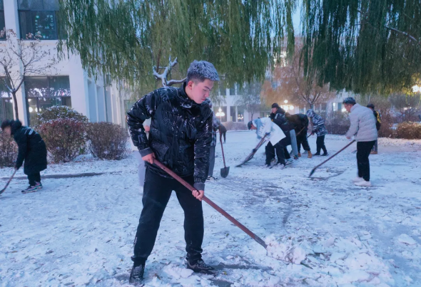 “领跑者计划”学员们不畏严寒,不断前行,他们甩开膀子,挥动手中的工具,个个干劲十足,一派热火朝天的景象:有的弯腰奋力铲雪,有的俯身清理雪堆,很快就将部分路面清扫干净。同学们用实际行动,让严寒的冬日变得格外温暖。