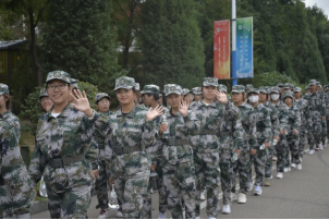 清晨,一群身着迷彩的青春少年