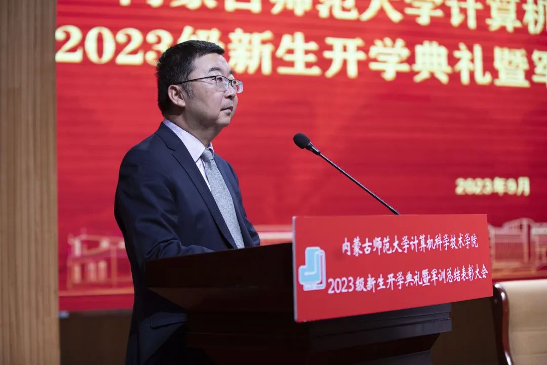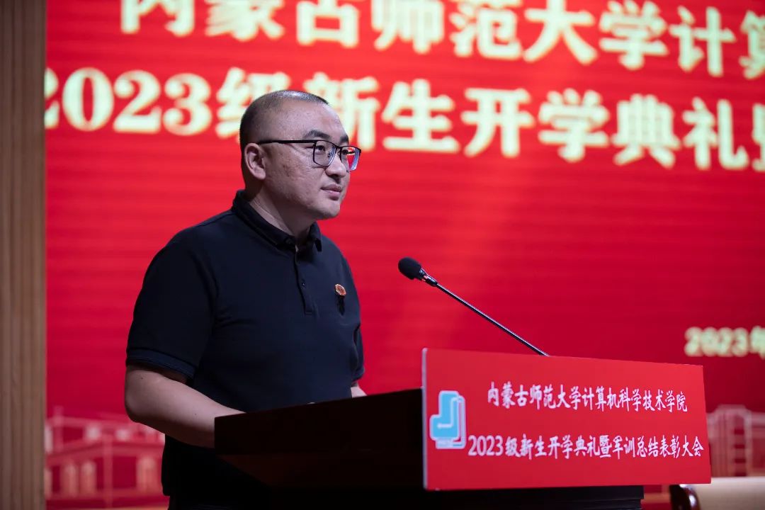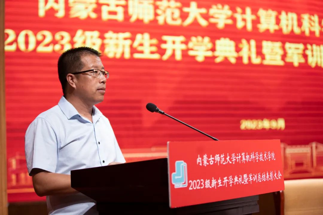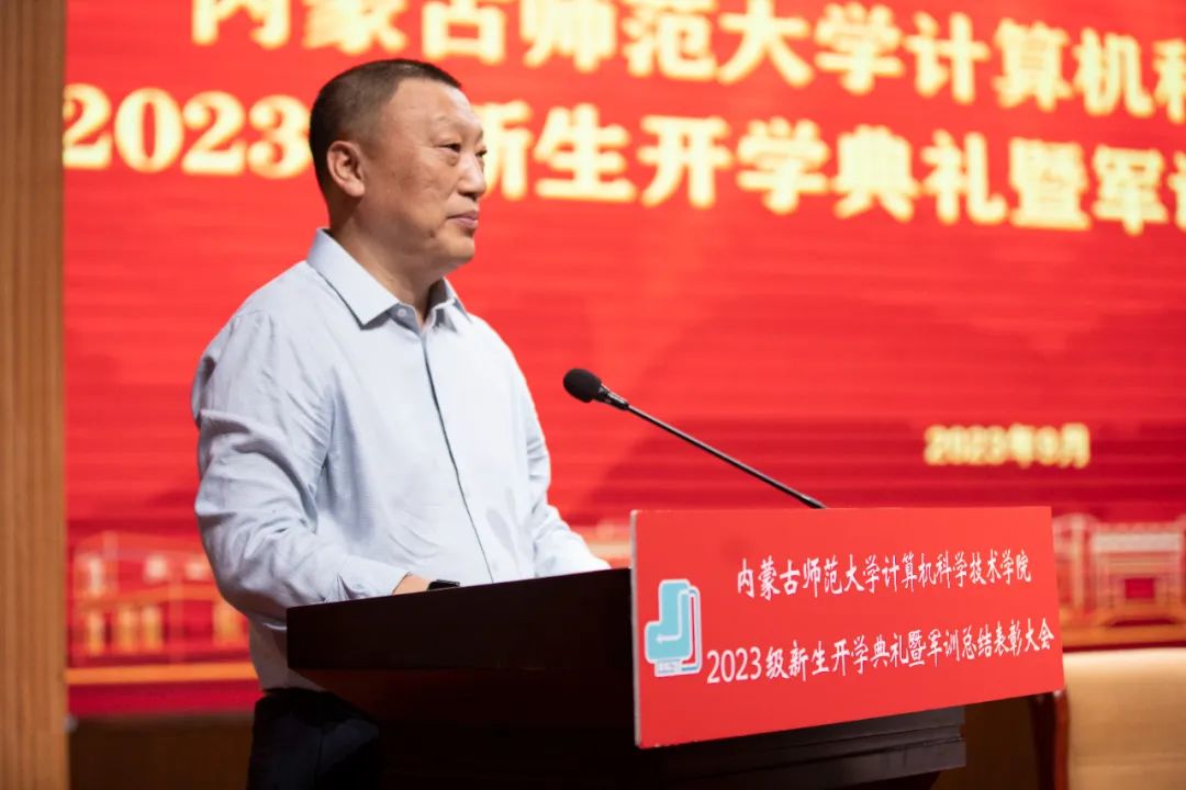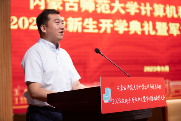 beat365英国官方网站党委书记王海龙,beat365英国官方网站党委副书记、院长、博士生导师林民,副院长斯琴图,计算机系主任朝力萌,网络与软件工程系主任孟繁军,副主任葛湘巍、徐行健,数据科学与人工智能系副主任包萨仁娜,全体新生班辅导员以及beat3652023级373名本科生和59名研究生出席大会。学院团总支书记赵巍伟主持大会。