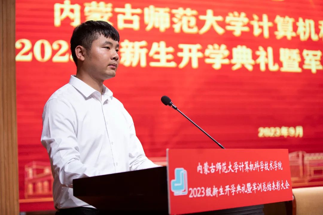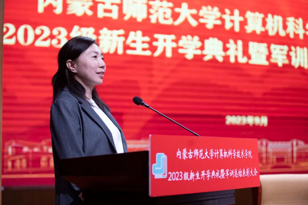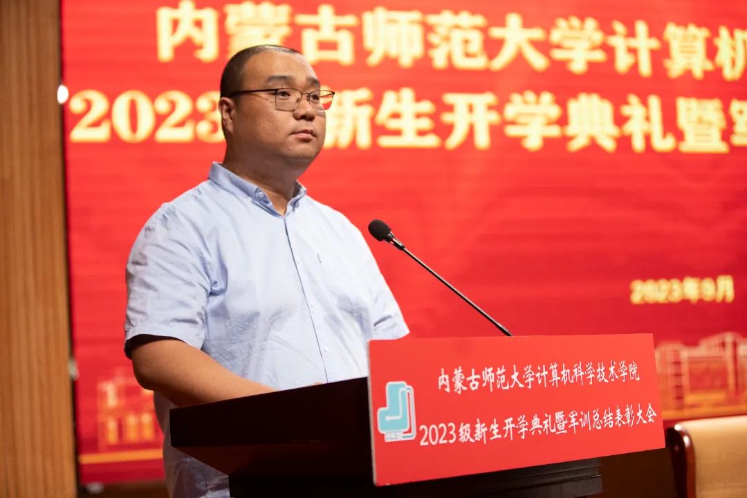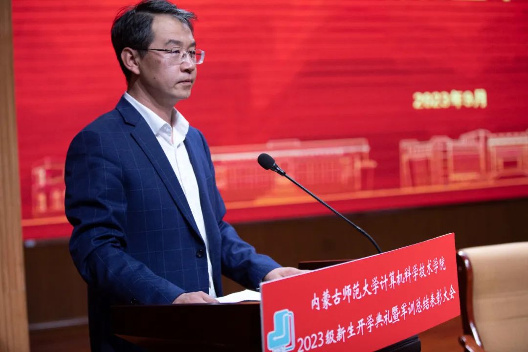 beat365英国官方网站党委书记王海龙,beat365英国官方网站党委副书记、院长、博士生导师林民,副院长斯琴图,计算机系主任朝力萌,网络与软件工程系主任孟繁军,副主任葛湘巍、徐行健,数据科学与人工智能系副主任包萨仁娜,全体新生班辅导员以及beat3652023级373名本科生和59名研究生出席大会。学院团总支书记赵巍伟主持大会。