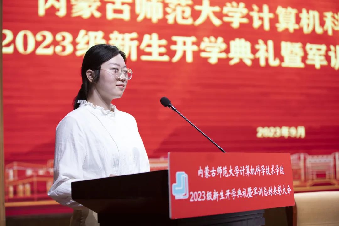 本科生新生代表、2023级计算机科学与技术师范2班时旭同学发言。