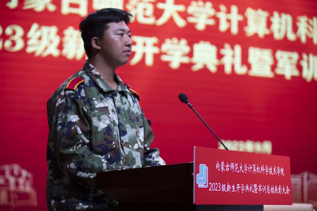 计算机系主任朝力萌老师宣读2023年度军事技能训练校级标兵名单,并颁奖。