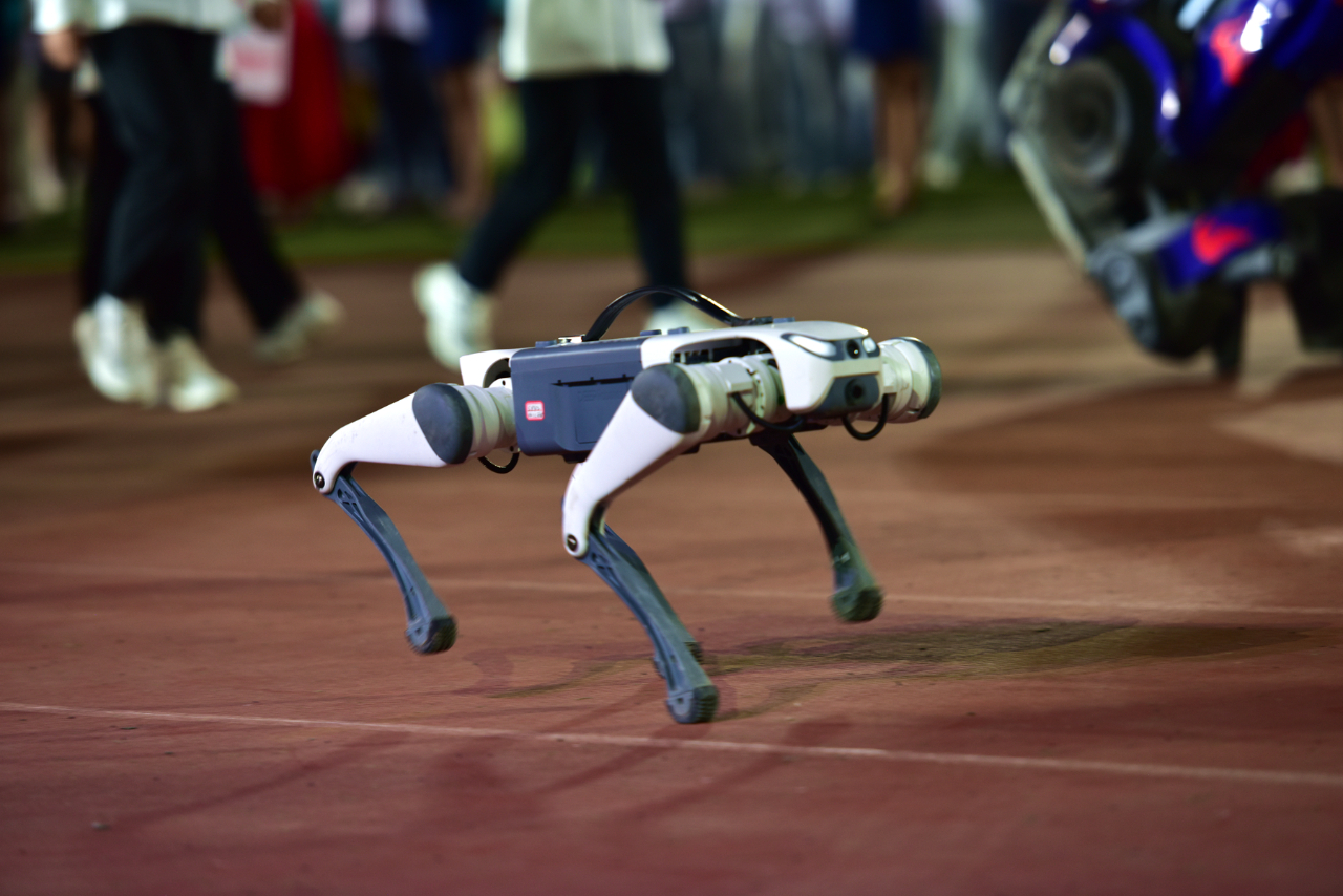 本次开幕式上,人形机器人模型擎天柱、大黄蜂以其高大威猛的形象成为了人群中的焦点,极大地激发了学生们对科技创新的兴趣,展现了计算机科学的无穷魅力。形态逼真的轮腿式平衡机器人由beat365英国官方网站机器人与人工智能创新中心的师生自主研发,集成了多种先进的人工智能技术,具有精准的动作和灵敏的反应,能够灵活地完成各种复杂的动作,充分展示了beat365在人工智能和机器人技术方面的成功探索。