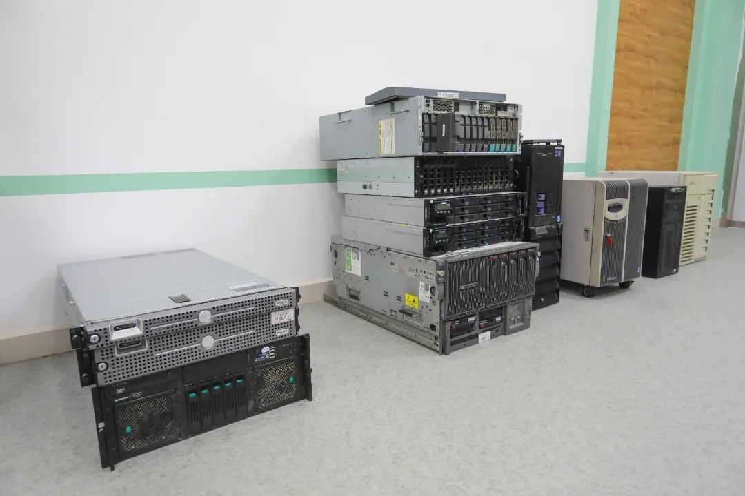 服务器展区展出了塔式服务器、刀片式服务器以及存储设备20多台。这些设备展示了数据存储与处理技术的不断发展,满足了不同时期学校对数据管理的需求。