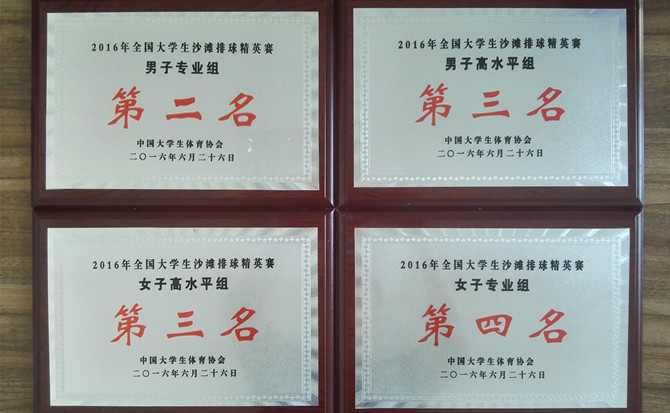 2016年6月23日至26日,全国大学生沙滩排球精英赛在宁夏银川举行。koko体育官网四支沙滩排球代表队分别荣获男子专业组第二名,男子高水平组第三名,女子高水平组第三名,女子专业组第四名的好成绩。