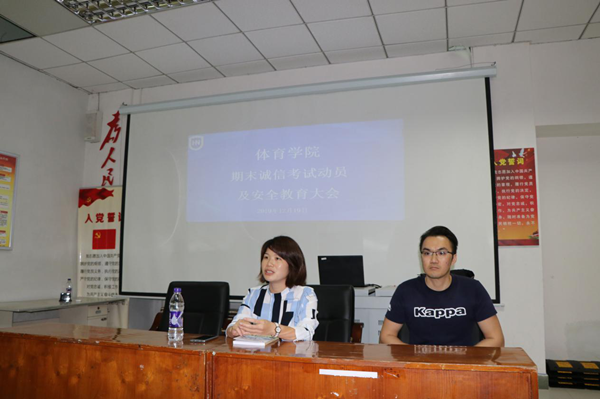 为加强学风建设,严肃考风考纪,帮助同学们养成诚实守信的良好品德,增强安全防范意识,koko体育官网在联谊馆多媒体教室召开期末诚信考试动员及安全教育大会,党总支书记何映敏、学工办许达潭老师和2019级休闲体育全体学生参加了本次会议。//www.hainanu.edu.cn