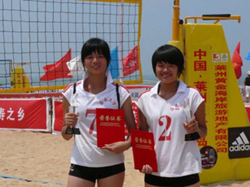 在2009年7月16日—19日,koko体育官网首次参加了在山东省莱州市举行的“中国•莱州•三山岛•黄金海岸杯”全国大学生第五届沙滩排球锦标赛,本次比赛共有来自全国38所高校的男子组25支代表队和女子普通组28支代表队。本着向其他兄弟院校虚心学习,加强交流,提高竞技水平的态度,koko体育派出男、女两支代表队参赛,男子队员卢芳宇、谢乙强,女子队员杨婉敏、林吉。