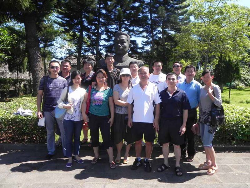 体育部党员在冯白驹故居雕塑前留影