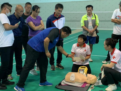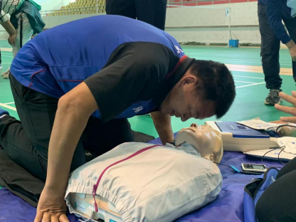 为保障全校师生体育锻炼时的安全,提高师生遇到突发事件应急处置能力,掌握安全急救知识,11月10日下午,koko体育官网组织教职工于联谊馆羽毛球场进行心肺复苏和自动体外除颤器(AED)使用培训。学院党总支书记陈卫东、院长洪家云、副院长田东、梁丽凤、房殿生和教职工参与培训,校医院副院长朱萍莅临现场进行指导。