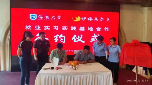 当天下午,陈卫东书记率队赴伊格高尔夫公司红树湾基地与伊格高尔夫公司签订就业实业实践基地协议,并就下一步实习实践活动的开展、干部培训等内容进行了探讨和交流。陈卫东书记在签约仪式上表示,共建大学生就业实习实践基地,是地方企业与高校建立全链条培养机制的重要举措,双方通过此次携手共建,将建立起常态化交流合作机制,以实习实践等多种形式,为学生了解地方经济发展和人才需求提供机会,对于在校生的专业技能提升和毕业生的就业起到了十分积极的作用。