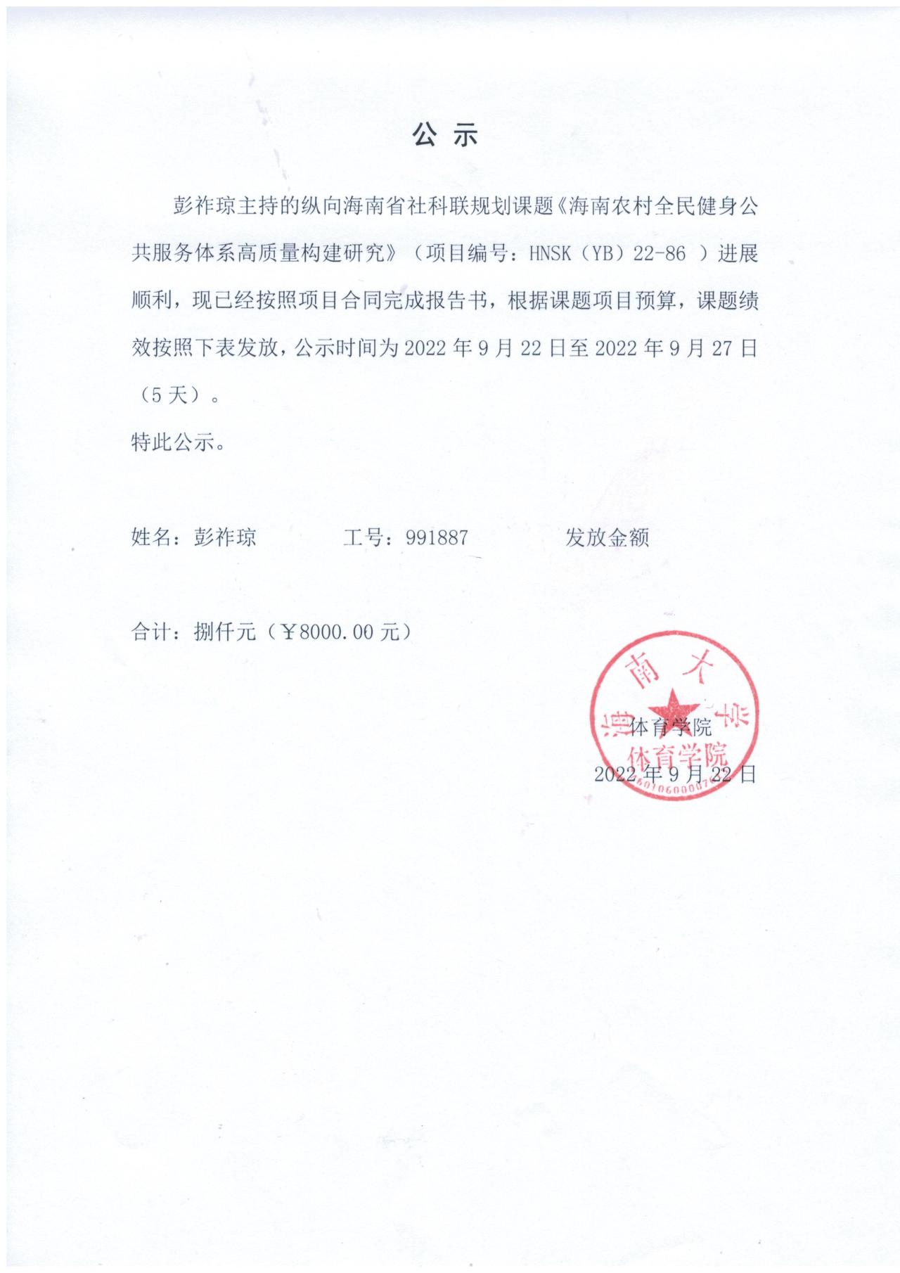 关于科研课题发放绩效的公示