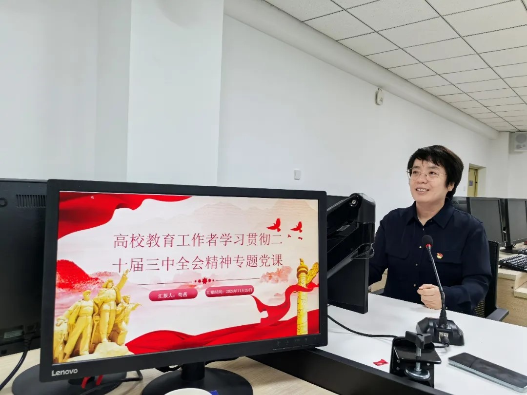 11月28日,beat365英国官方网站计算机系教工党支部举办了一场学习贯彻党的二十届三中全会精神的专题党课活动。本次活动旨在深入学习领会党的二十届三中全会精神,提升教职工党员的政治素养和教学科研能力,进一步发挥党员教师在塑造学生品格品行品位方面的重要作用。首先,beat365英国官方网站副院长智敏带来了题为《深入学习贯彻党的二十届三中全会精神,推动教育事业创新发展》的党课。在课上,智敏老师围绕作为一名高校教师如何学习贯彻党的二十届三中全会精神进行了深入讲解。她强调,作为教育工作者,要深刻领会全会精神,将党的教育方针和政策落实到教育教学工作中,不断提高教育教学质量和水平。同时,要加强师德师风建设,树立良好的教师形象,为培养德智体美劳全面发展的社会主义建设者和接班人贡献力量。