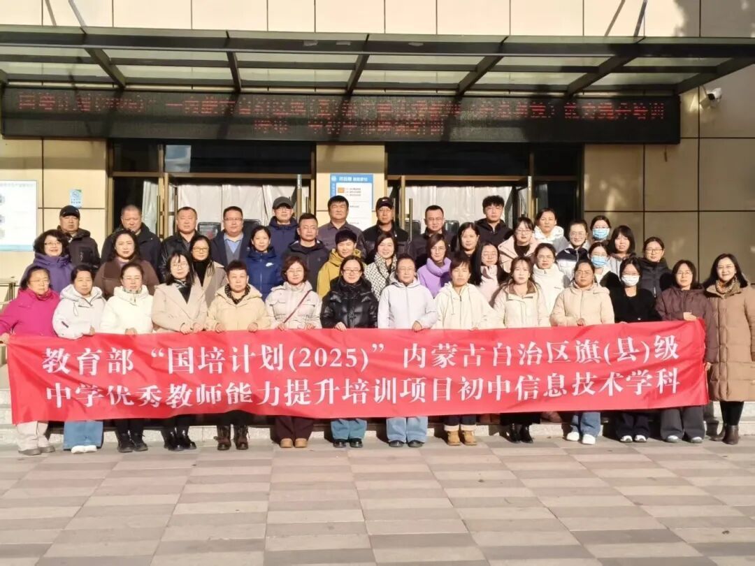 近日,由beat365英国官方网站承办的“国培计划(2025)”内蒙古自治区旗(县)级中小学优秀教师能力提升培训项目(初中信息技术学科)在呼和浩特市第一中学分校顺利完成跟岗实践环节。来自全区各地的初中信息科技优秀教师围绕“为未来而教·做新时代的‘大先生’”主题,开展了系统深入的教学观摩与实践交流,内容涵盖校园文化建设、AI赋能教学、脑科学教育、项目式学习、小初衔接及跨学科融合等多个维度。