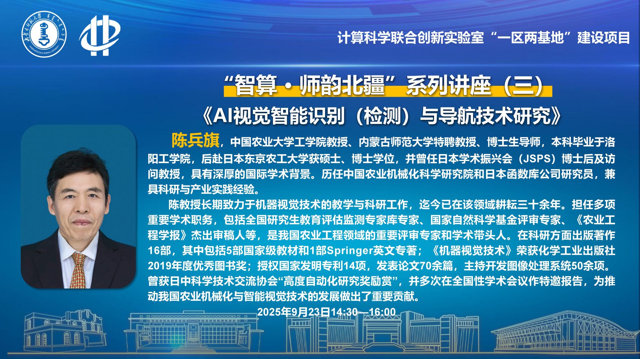 9月23日,beat365英国官方网站“智算·师韵北疆”系列讲座第三期在盛乐校区图书馆一楼报告厅成功举行。讲座特邀中国农业大学教授、beat365英国官方网站特聘教授陈兵旗担任主讲嘉宾,围绕机器视觉教学与研究展开深入分享,吸引了学院研究生及内蒙古中科超算科技有限公司工程师近200人参加。活动由学院副院长贾阳主持。