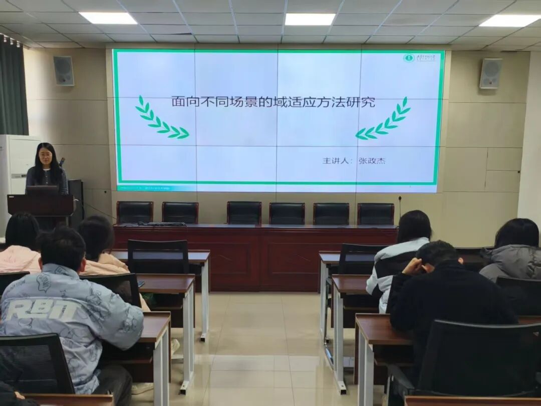 在题为《面向不同场景的域适应方法研究》的专题讲座中,张政杰老师系统阐述了域适应方法的核心理论与框架。讲座从机器学习中的领域泛化问题切入,指出训练场景与测试场景存在分布差异是传统模型性能下降的主要挑战,域适应技术则是应对该问题的有效途径。讲座进一步梳理了域适应的核心方法体系,包括无监督域适应、半监督域适应、无源无监督域适应以及无源主动域适应。其中,重点介绍了无源场景下的两类方法:无源无监督域适应通过构建伪源域与域内域间一致性学习实现跨域对齐;无源主动域适应则结合结构不确定性与多样性选择策略,在有限标注成本下提升模型泛化性能。