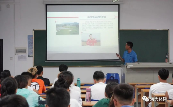 9月16日下午,学院特邀请中国高尔夫球协会国际级裁判员、海南高尔夫球协会副秘书长、教授陈盛炽、嘉世击剑培训中心的馆长王嘉亮、壹觉体育高尔夫教学导师吴祖昕为koko体育官网2019级休闲体育专业学生开设一场高尔夫球讲座。