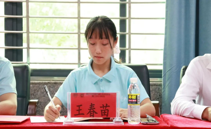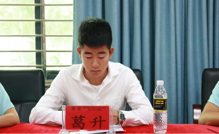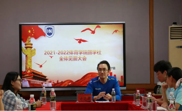 会议第一项,学工办主任许达谭致辞、颁发聘书。许谭达老师对卸任的团学成员表达了赞许,肯定他们在上学年为团学社工作付出的辛勤努力。同时对新加入的学生干事表示热烈欢迎,并提出了对团学社发展的要求与希望。许谭达老师提出今年是体院团学社成立第三年,团学社还处于发展阶段,需要每位团学社成员取长补短,发挥自己所学,为团学社发展尽心尽力。此外要求成员服从安排,尽职尽责,以全心全意为同学服务为宗旨。最后,鼓励全体新生干事大胆创新,敢于提出想法,善于自我批评,弥补不足之处,争取将各项团学社工作做得更加完美。