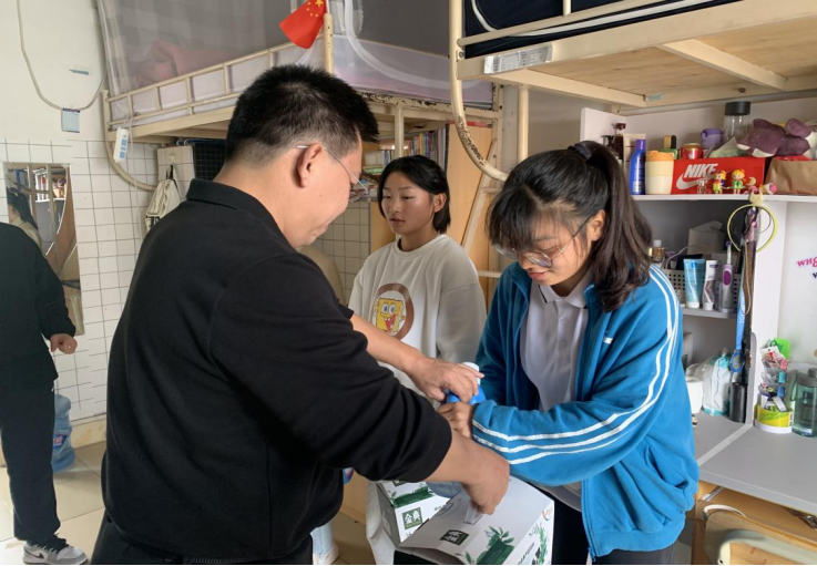 为促进学生身心健康成长,解决困难生面临的实际困难,切实开展“六帮”专项行动。3月1日中午12:00,在koko体育官网党总支书记陈卫东的带领下,学工办主任许达谭、班主任张旭辉、孙吉成、高子岩、赵帅、黄浩、陈先俊和辅导员谢淑婷深入学生宿舍开展困难生慰问活动,为16名困难生送上春日关怀礼包。