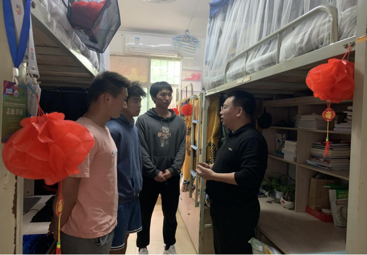 现场老师与同学们亲切交谈,交流近来生活和学业情况,希望学生学好本领、放宽眼界、提升自我,努力成才。殷殷嘱托,拳拳爱心,老师同时叮嘱学生们做好疫情个人防护、谨慎辨别网络信息、注意宿舍用电安全等,提高学生安全防范意识。